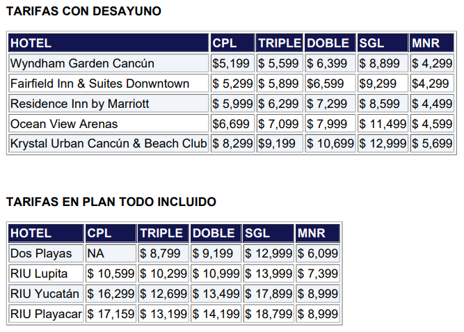 Régimen de alimentos según hotel de su elección. Día libre para actividades personales, le sugerimos realizar visita a alguno de los parques temáticos (NO INCLUIDO)